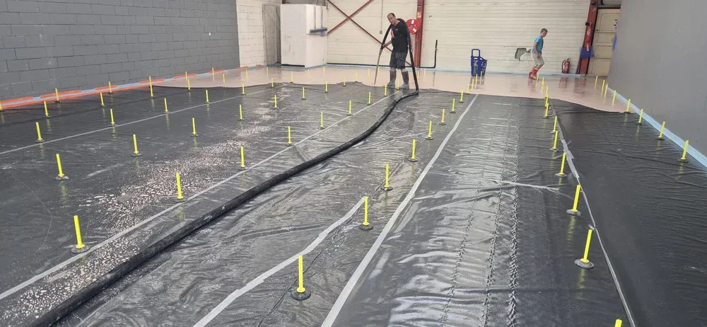 La chape anhydrite Thermio Max s'est imposée comme le choix idéal pour ce projet. Reconnue pour ses hautes performances mécaniques et sa conductivité thermique optimisée, elle est particulièrement adaptée aux surfaces commerciales, où la résistance, la planéité et la durabilité sont essentielles. L'objectif était double : corriger les défauts du support existant et obtenir une surface parfaitement plane prête à recevoir le revêtement final. Grâce à sa fluidité exceptionnelle, la chape anhydrite Thermio Max permet un enrobage homogène et un résultat d'une grande précision.