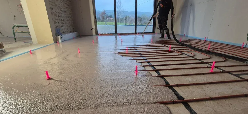 Chape Liquide Masson, spécialiste de la chape liquide et de l'isolation des sols, a récemment réalisé un projet d'envergure sur la Côte Roannaise, dans le département de la Loire (42). Notre intervention a consisté en le coulage d'une chape liquide Thermio Max sur un plancher chauffant, une solution parfaite pour allier confort thermique, performance énergétique et qualité de finition.